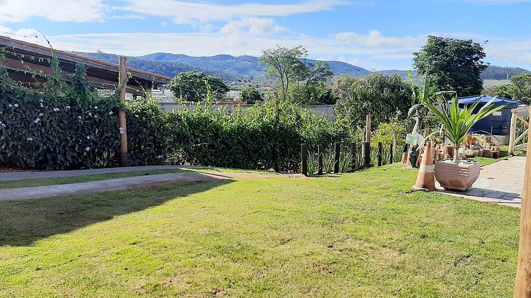 Bem-vindo à nossa casa em Atibaia! Construída com materiais de reaproveitamento, nossa casa oferece uma atmosfera única com materiais de demolição. Duas suítes, uma lareira interna acolhedora e uma área de churrasqueira com dois quartos adicionais e um banheiro, você encontrará todo o conforto necessário. Além disso, nossa piscina oferece uma vista deslumbrante da Pedra Grande. A apenas 3 minutos da rodovia Fernão Dias, nossa casa é o refúgio perfeito para quem busca comodidade e tranquilidade.