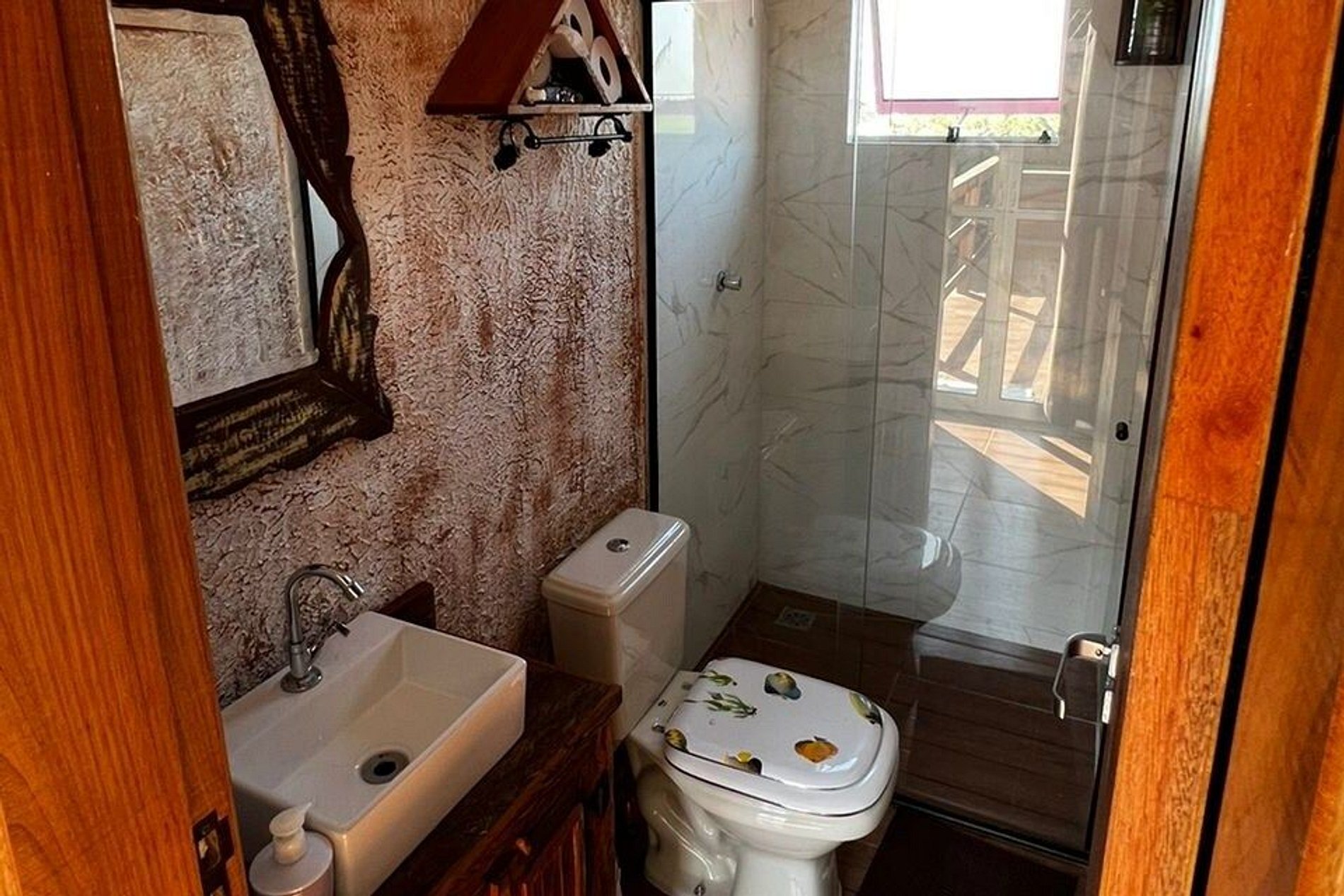 01 banheiro nos quartos da churrasqueira